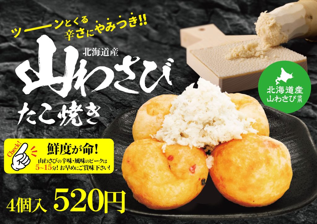 力強くシャープな辛みが特徴な山わさびとたこ焼きの組み合わせ。